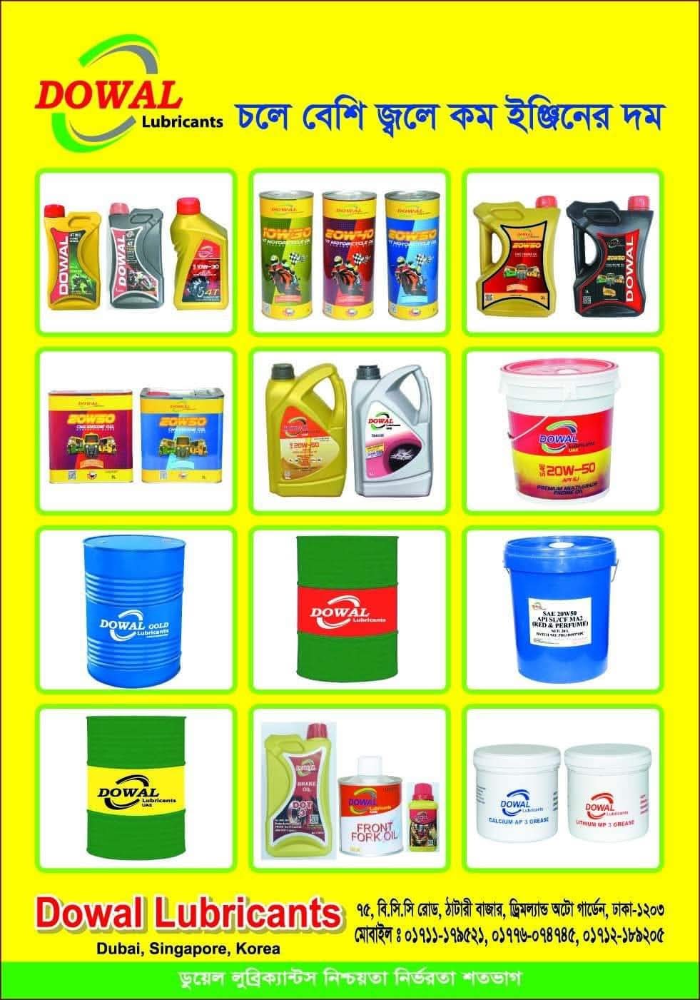 Dowal Lubricants is based in Bangladesh, having various businesses including Import/ Export, Whole sale & manufacturing of industrial lubricants and Engine greases.